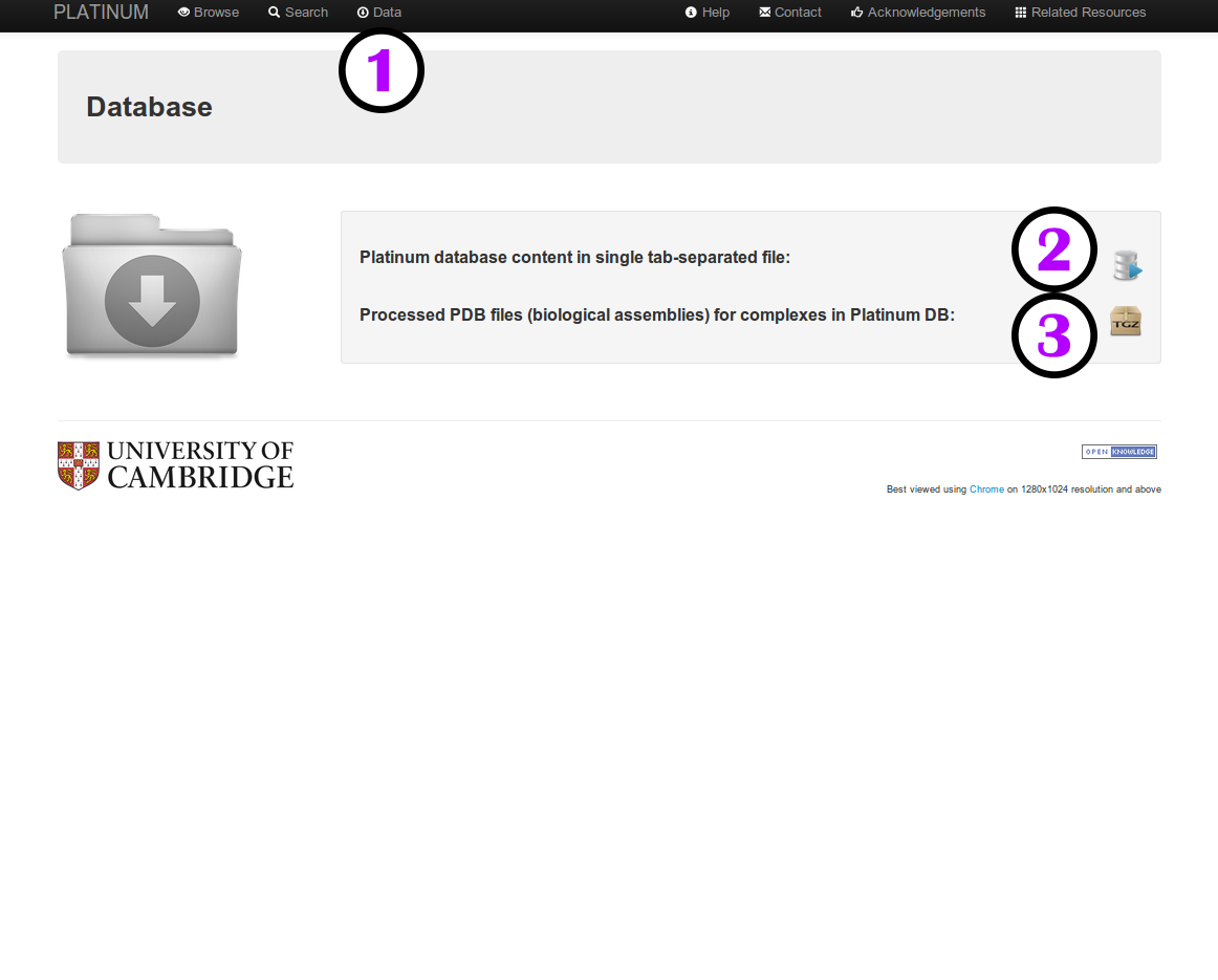 The data page (1) allows users to download the complete set of information available in PLATINUM: